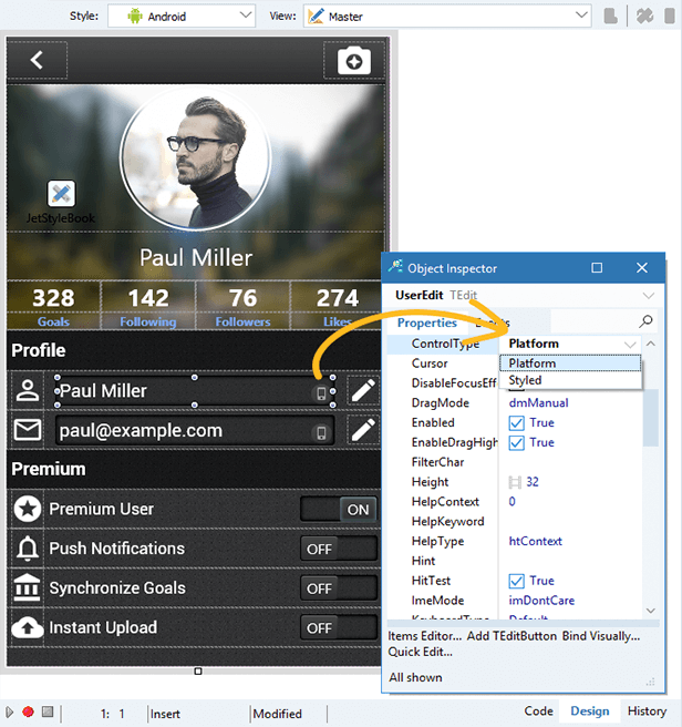 - Зв`язуйте будь-які елементи призначеного для користувача інтерфейсу з джерелами даних за допомогою візуального редактора LiveBindings Designer.